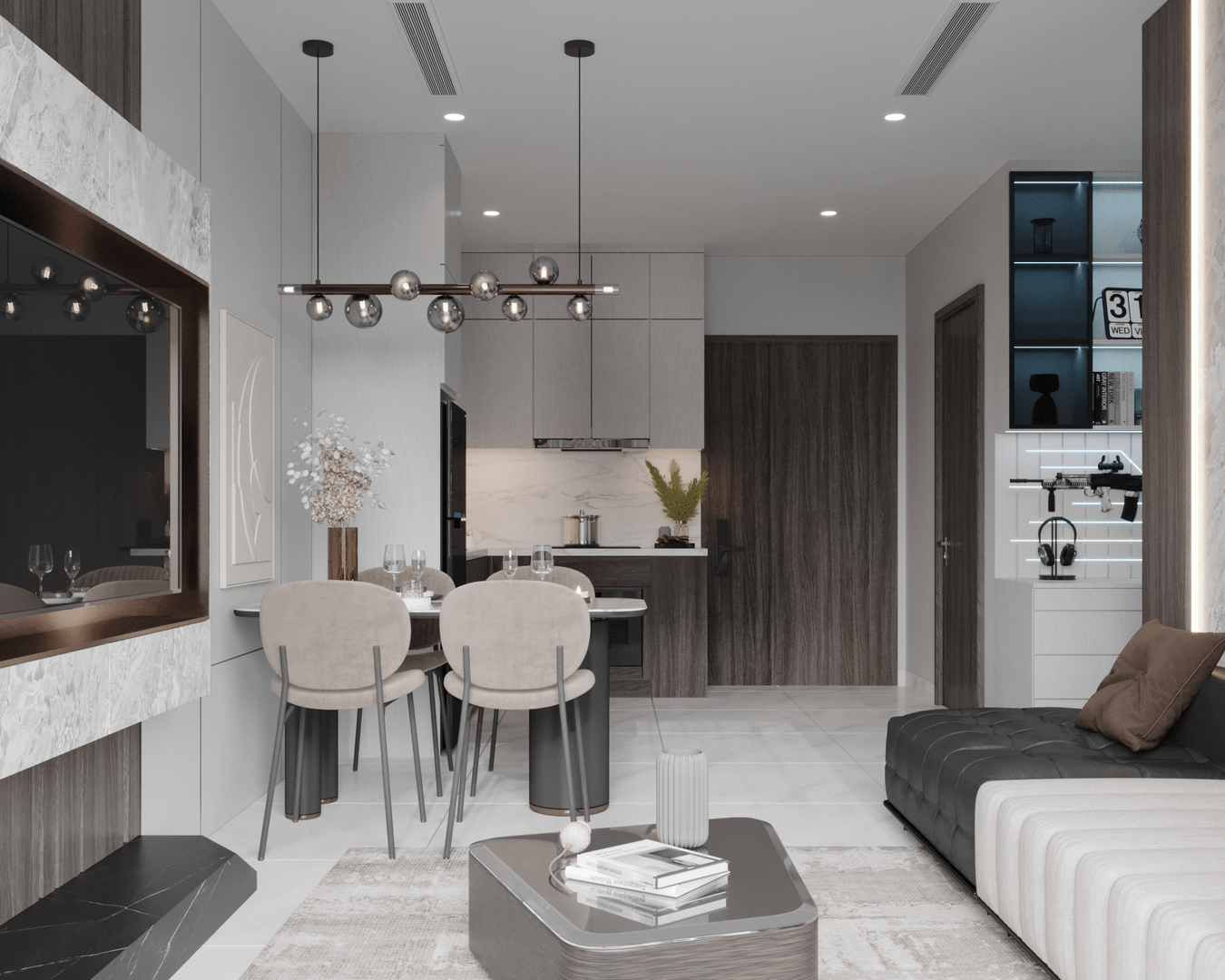 The Opus One với 100% căn hộ Smart Home cùng tiêu chuẩn bàn giao đẳng cấp. Nội thất liền tường hiện đại đến từ các thương hiệu nổi tiếng cộng hưởng cùng những đường nét thiết kế tinh tế tô điểm sự sang trọng, đẳng cấp cho toàn bộ căn hộ.